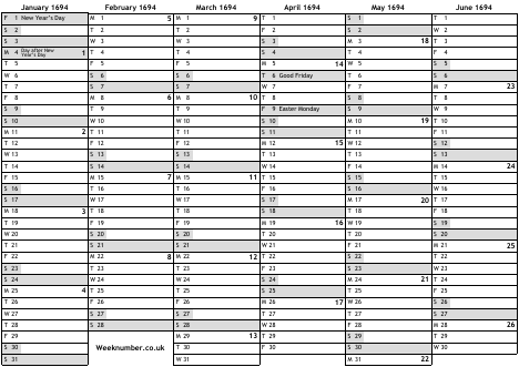 1694 calendar