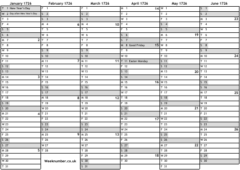 1726 calendar