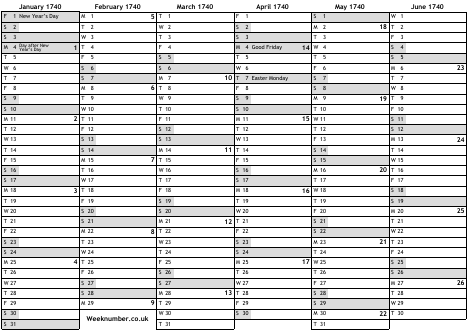 1740 calendar