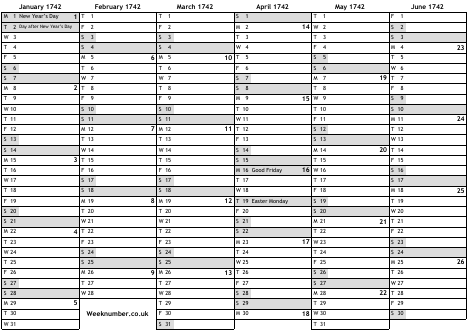 1742 calendar