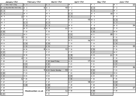 1761 calendar
