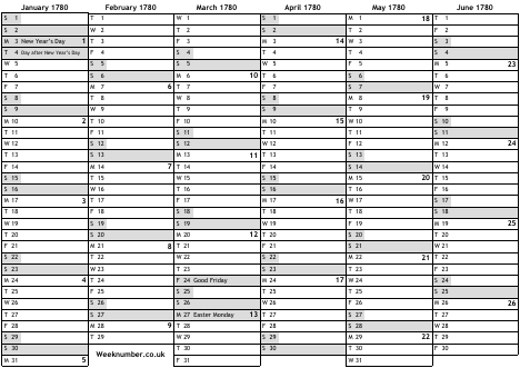1780 calendar