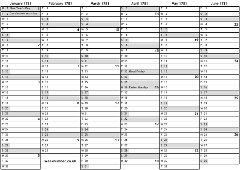 1781 calendar