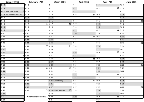 1785 calendar