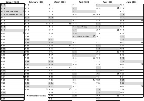 1803 calendar