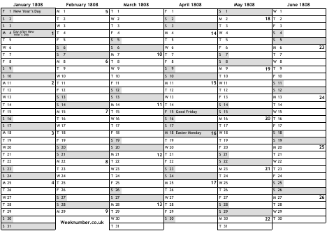 1808 calendar