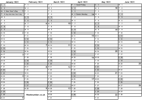 1831 calendar
