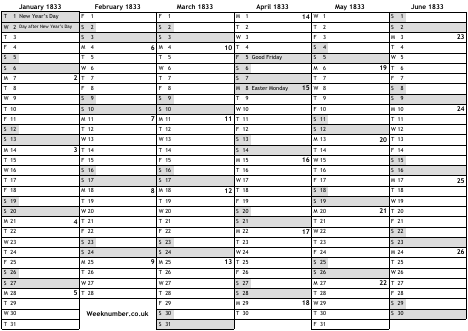 1833 calendar