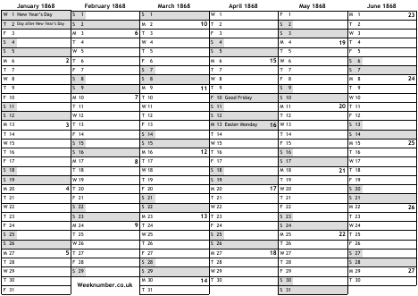 1868 calendar