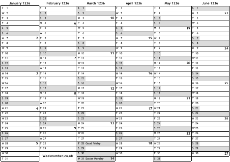 1236 calendar