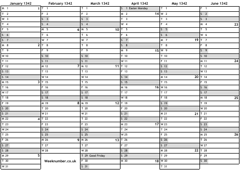 1342 calendar