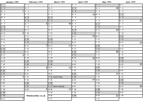 1391 calendar