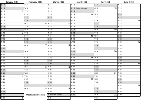 1453 calendar
