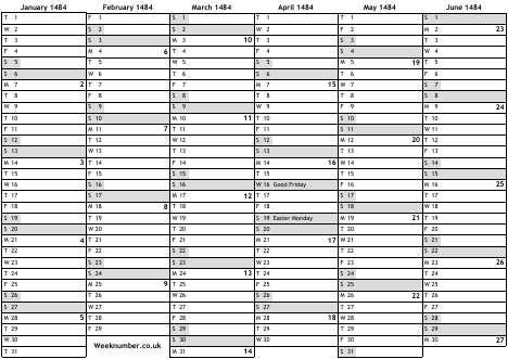 1484 calendar