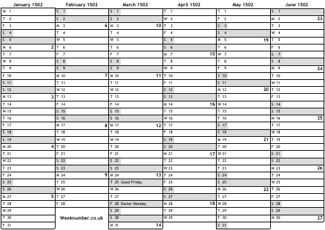 1502 calendar