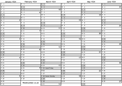 1524 calendar