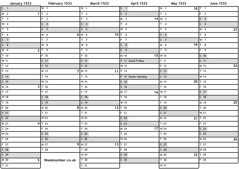 1533 calendar