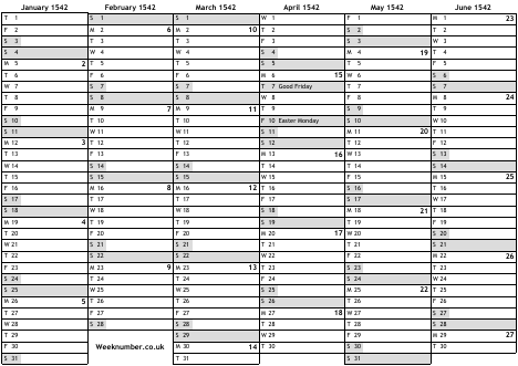 1542 calendar