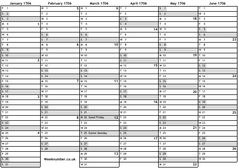 1706 calendar