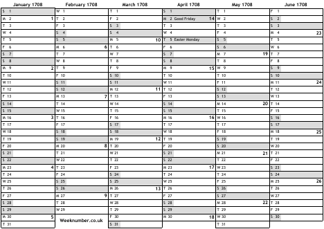 1708 calendar