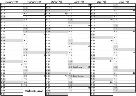 1709 calendar