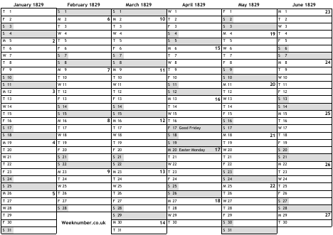 1829 calendar