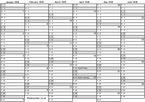 1848 calendar