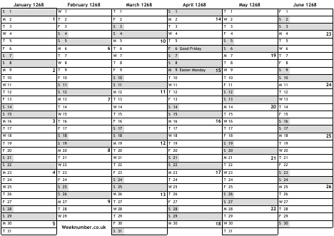 1268 calendar