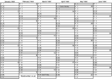 1464 calendar