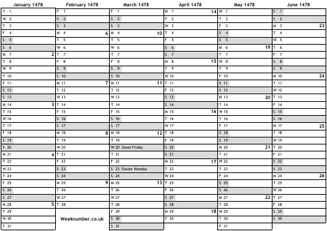 1478 calendar