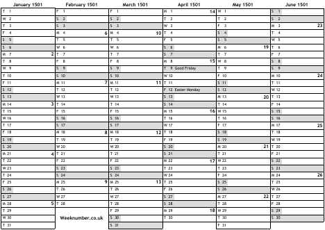 1501 calendar