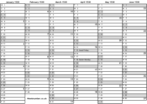1530 calendar