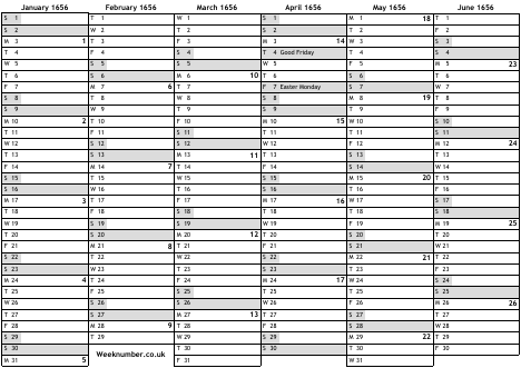 1656 calendar