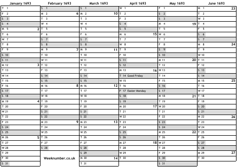 1693 calendar