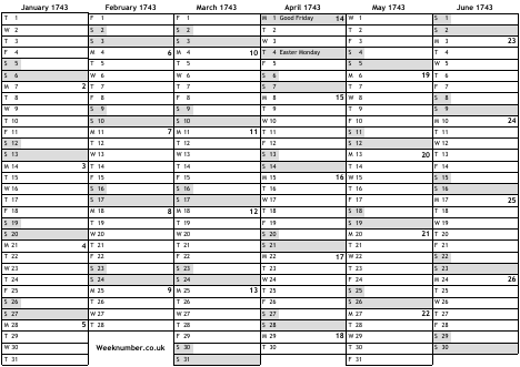 1743 calendar
