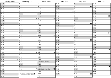 1842 calendar