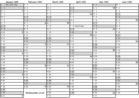 1205 calendar