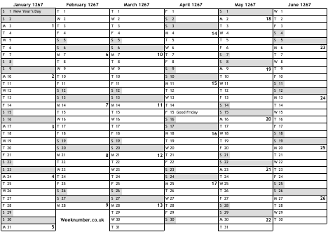 1267 calendar