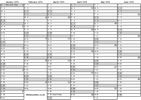1274 calendar