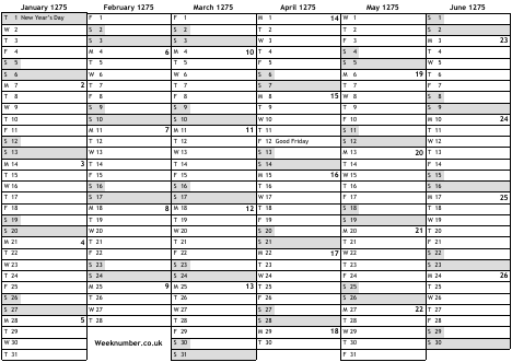 1275 calendar