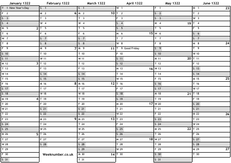 1322 calendar