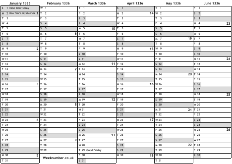 1336 calendar