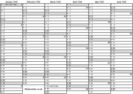 1342 calendar