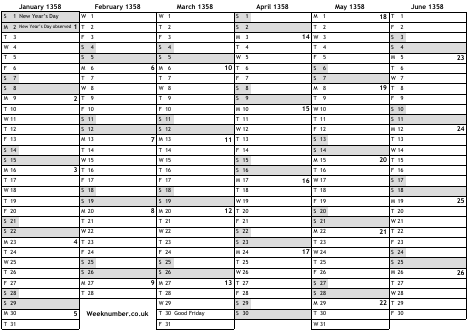 1358 calendar