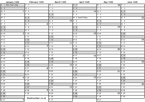 1420 calendar
