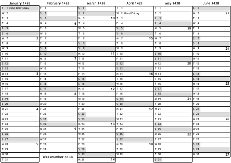 1428 calendar