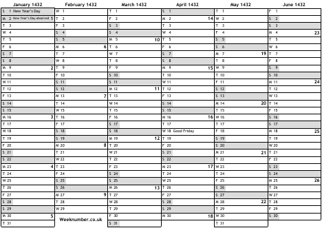 1432 calendar