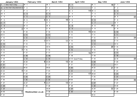 1454 calendar