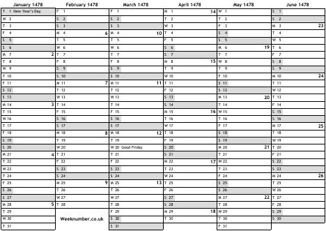 1478 calendar
