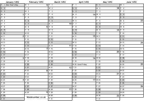 1492 calendar